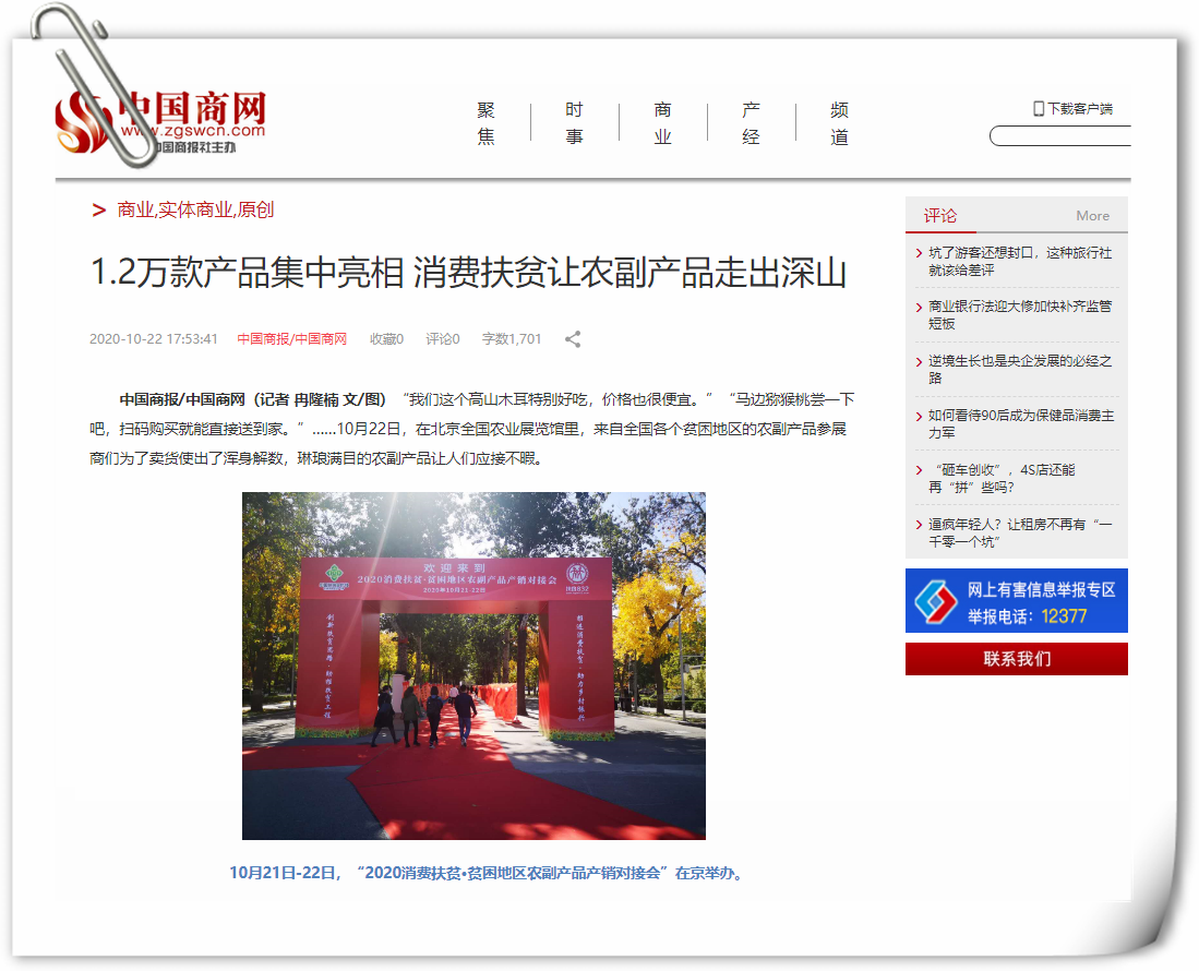 10月21日-22日,“2020消費扶貧·貧困地區農副產品產銷對接會”在京舉辦。
